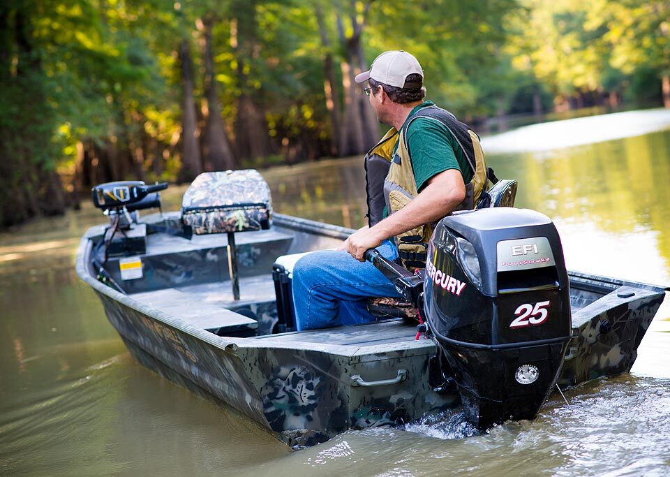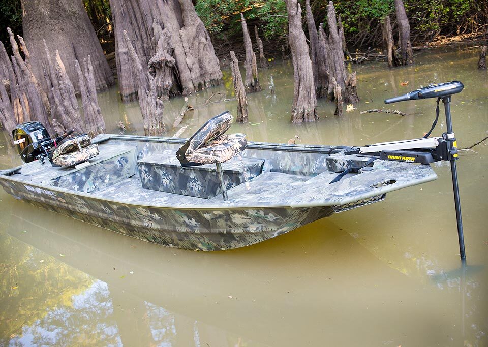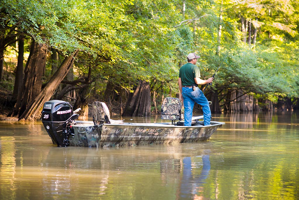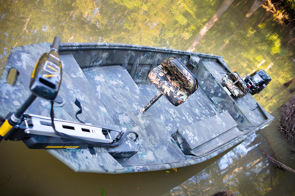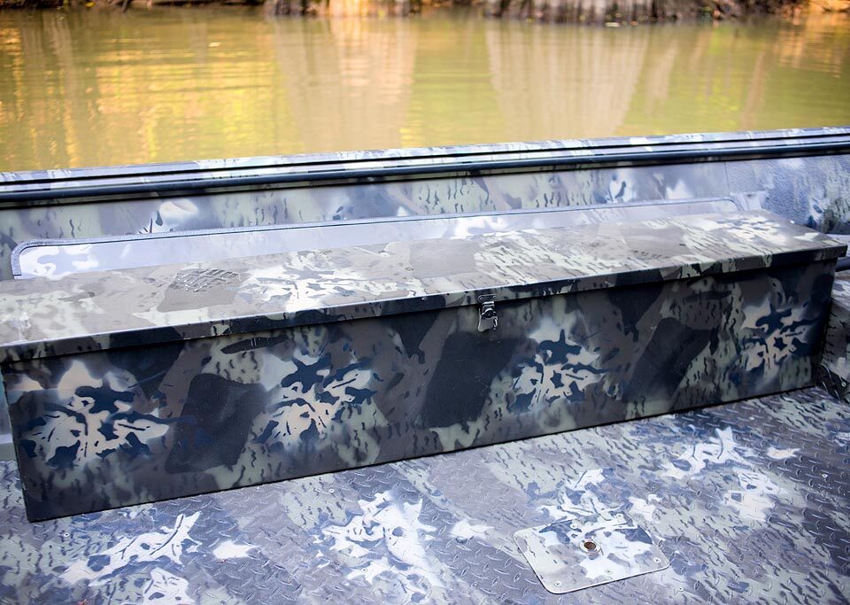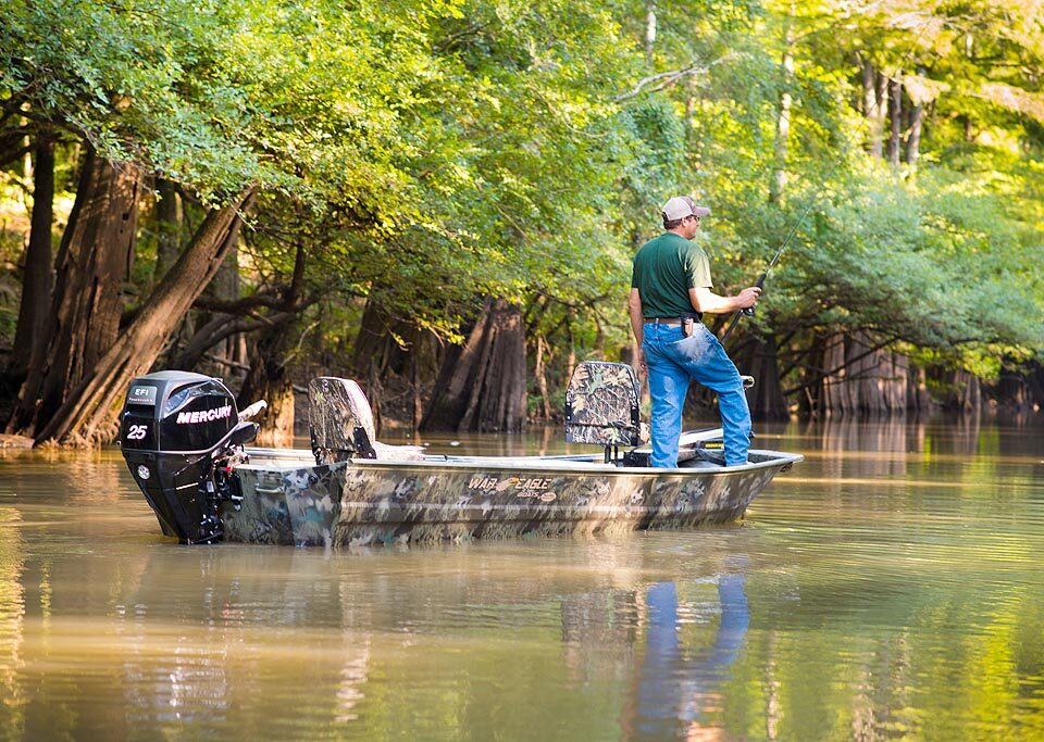 War Eagle model 754 is a popular side console model. The 754 is one of our most versatile models and is available with storage for both hunting and fishing equipment. The 754 is available with a low front casting deck in the LDSV model, or with a high front casting deck in the DSV model. The 754LDSV comes with a 12°V hull for a softer ride. Even though this boat is rates for up to a 90HP motor, it is one of the best performing boats with mid range horsepower (40-75). The 754LDSV is small enough to get you into the backwaters but it is also large enough and stable enough to get you into larger lakes and rivers.